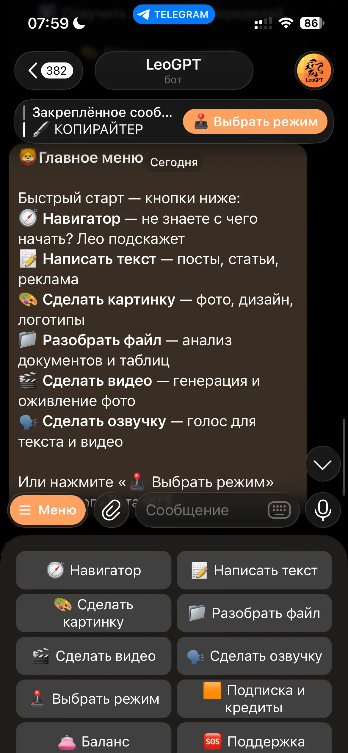 LeoGPT поможет с любой задачей, связанной с созданием контента, подбором информации или оптимизацией процессов. Вы можете: генерировать уникальные тексты для любой платформы — смс-рассылки, лонгриды, экспертные статьи, посты, контент для личного блога, отвечать на запросы/отзывы клиентов, создавать описания и изображения для карточек товаров, генерировать видео-контент, анализировать конкурентов, сайты, отзывы, изучать новые темы и многое другое. Чтобы открыть все возможности искусственного интеллекта для жизни и бизнеса — присоединяйтесь к нам.